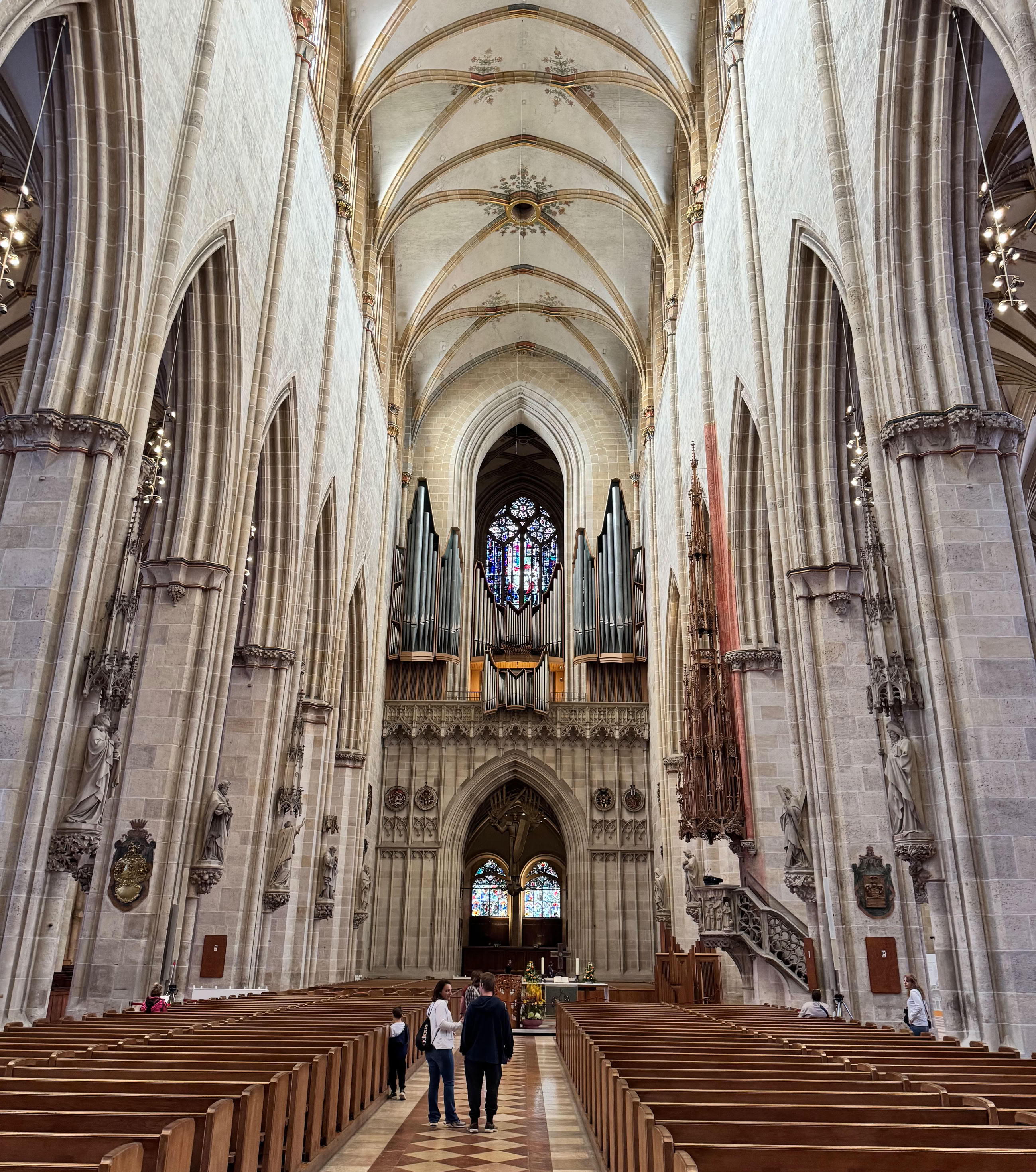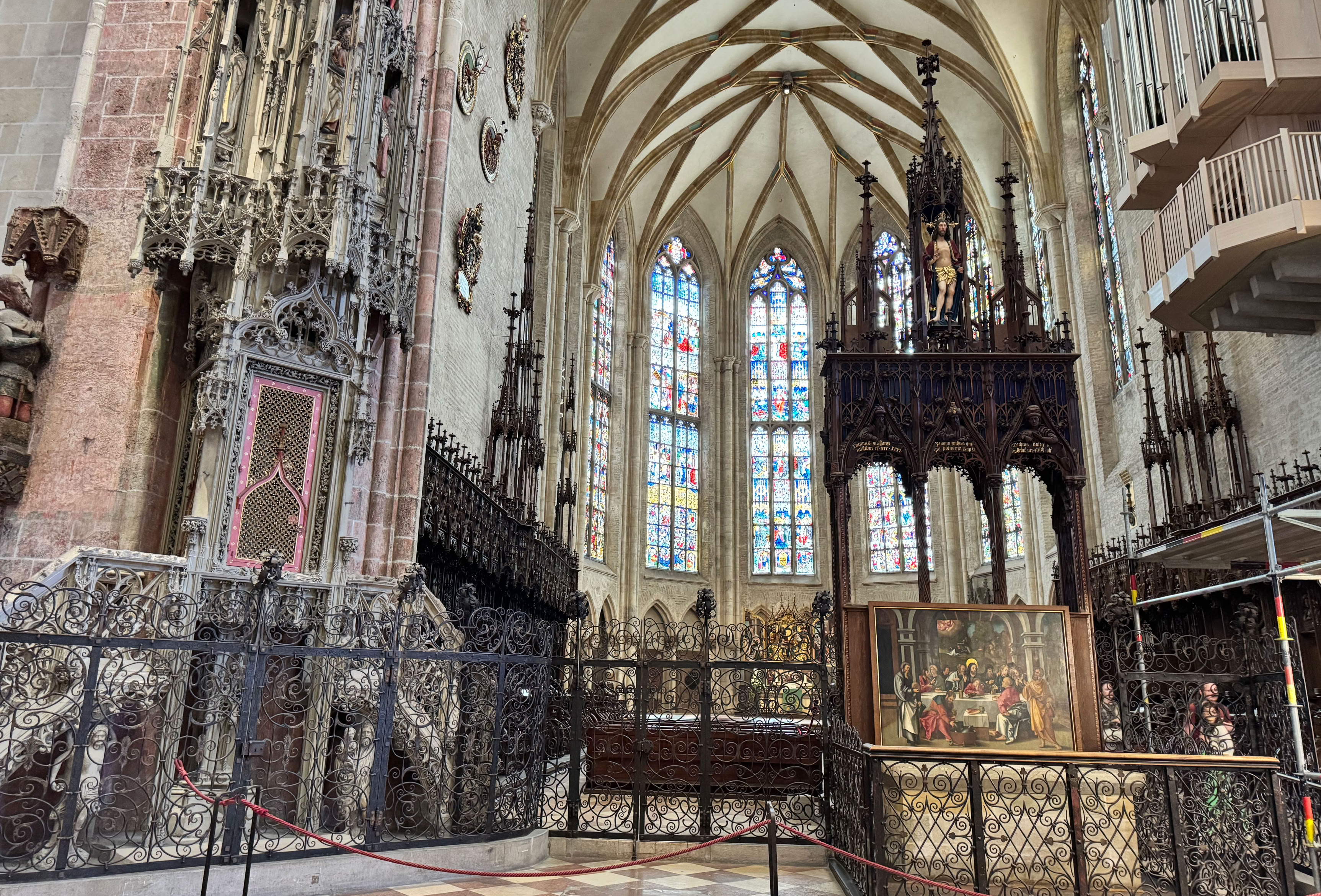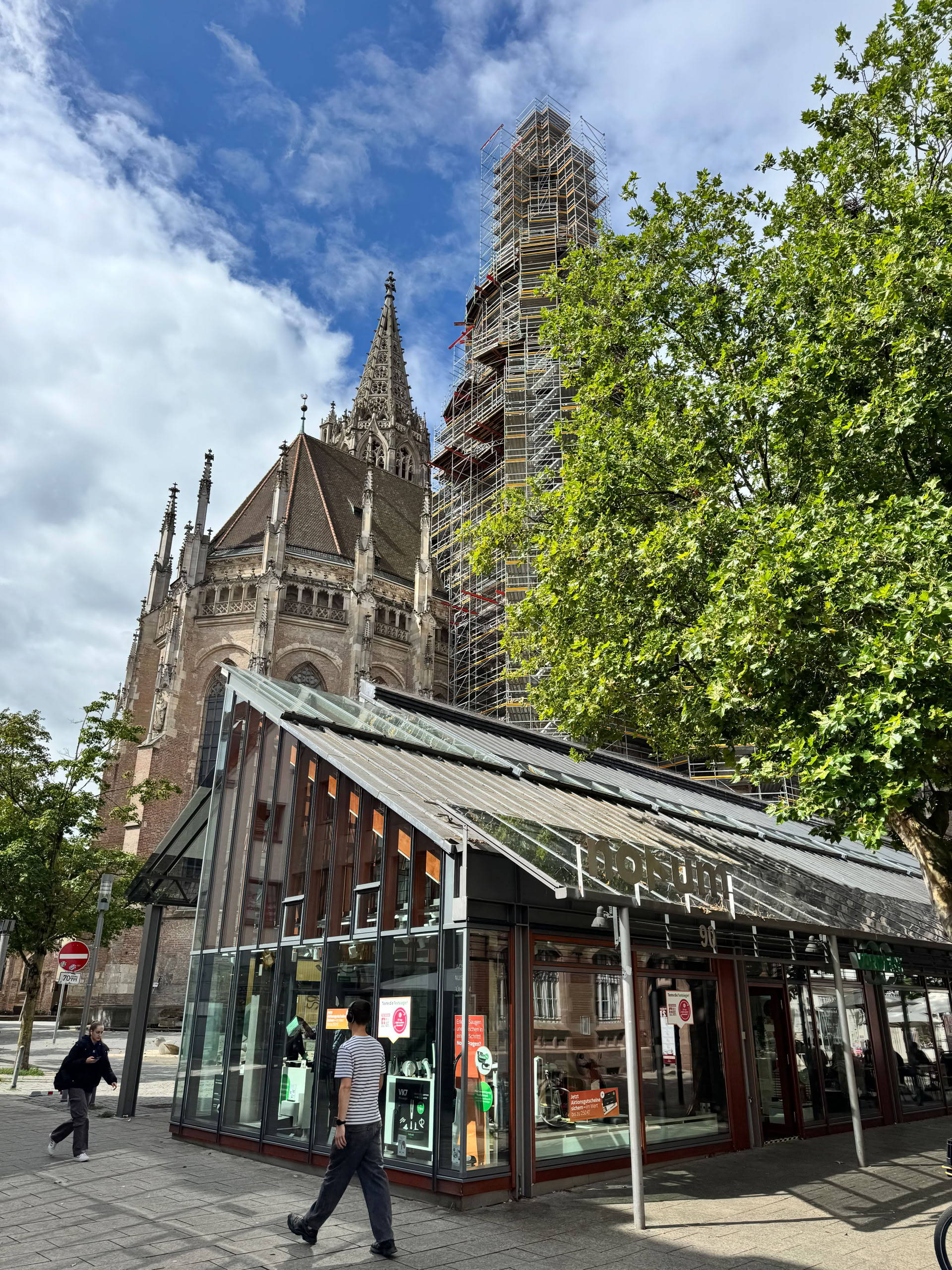 Wir gehen einmal durch die Innenstadt und um das Münster. Leider ist der Turm des Münsters zur Zeit eingerüstet; auch hier muss saniert werden.