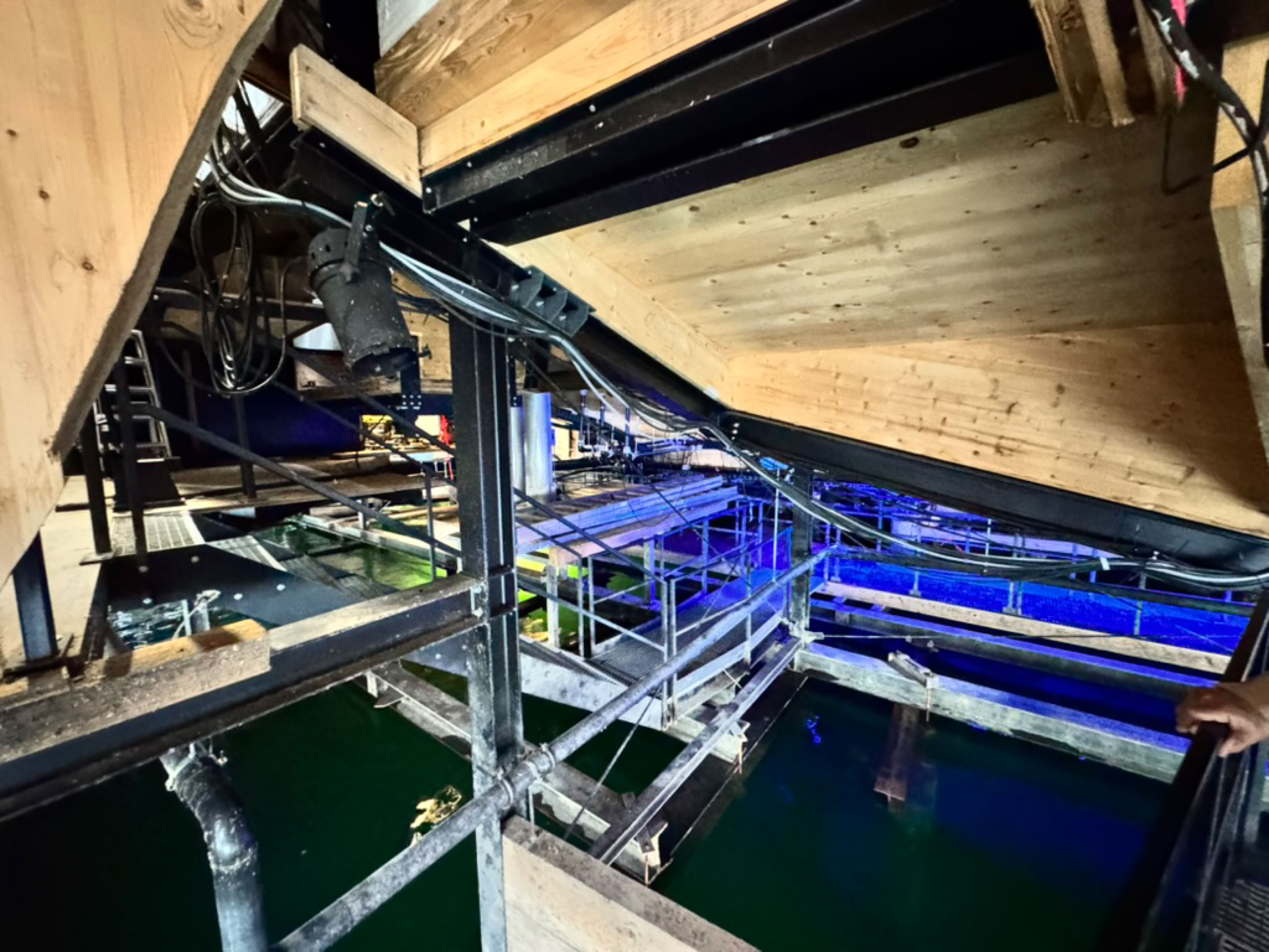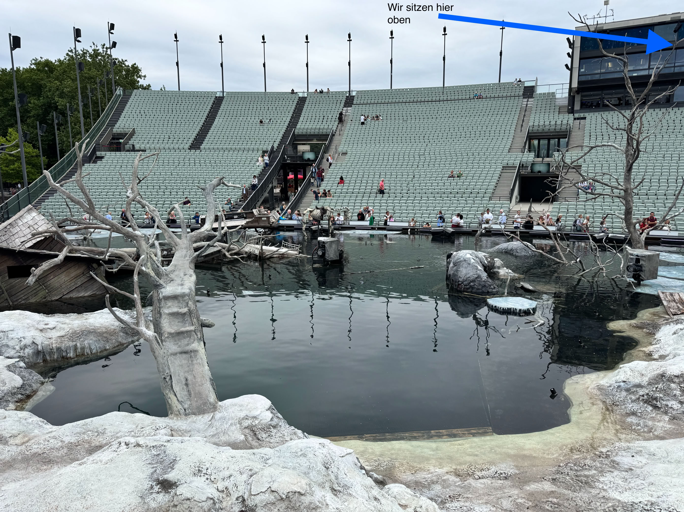 Dann gehen wir in den Zuschauerbereich der Seebühne und vor dort auch “back-stage”; also hinter und unter die Bühne.