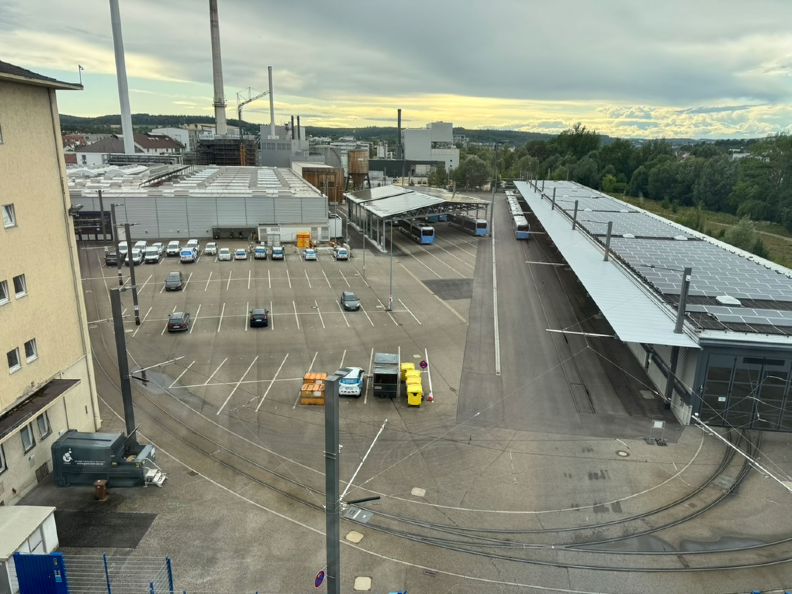 Blick vom Hotelzimmer in Ulm auf den Betriebshof der Stadtwerke ;-)
