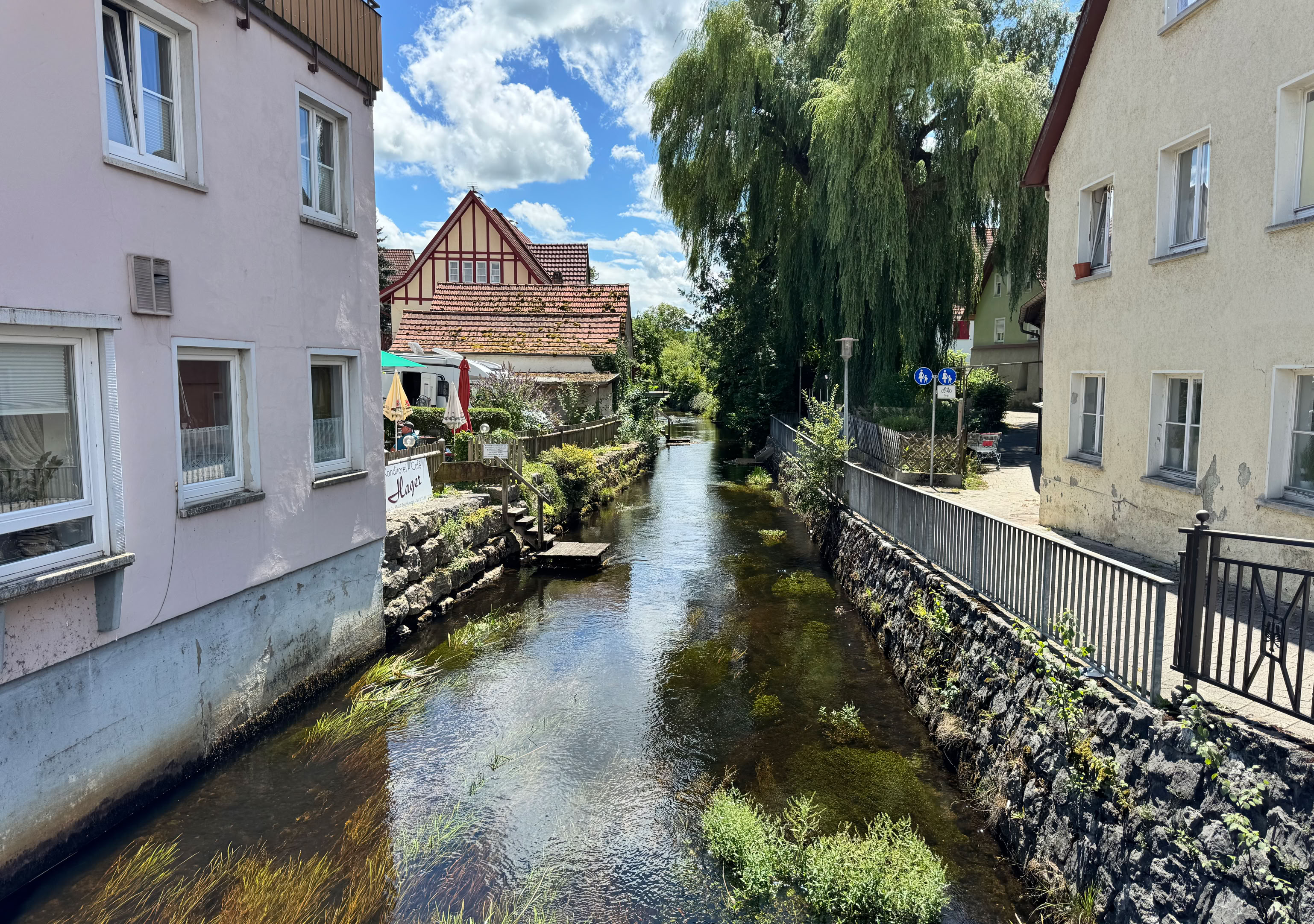 So um 14:00 Uhr möchten wir in Bad Wurzach eine Kleinigkeit Essen. Wir finden zwar ein kleines Cafe/Restaurant mit Garten, aber um diese Zeit gibt es hier nichts mehr außer Eisbecher und Kuchen. Auch komisch.