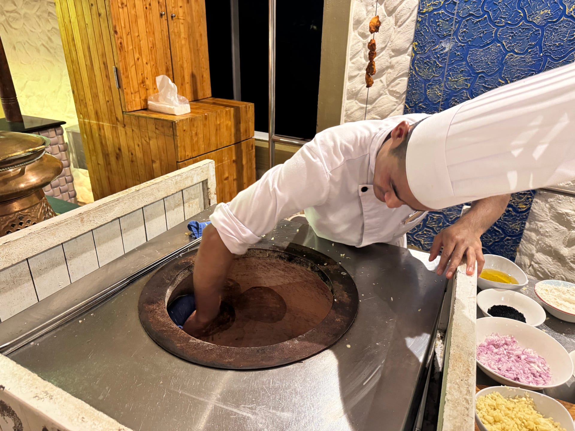 Das ist der Naan-Ofen. Das Brot wird an die Innenwand (ca. 350 Grad) “geklebt” und ist nach kurzer Zeit fertig
