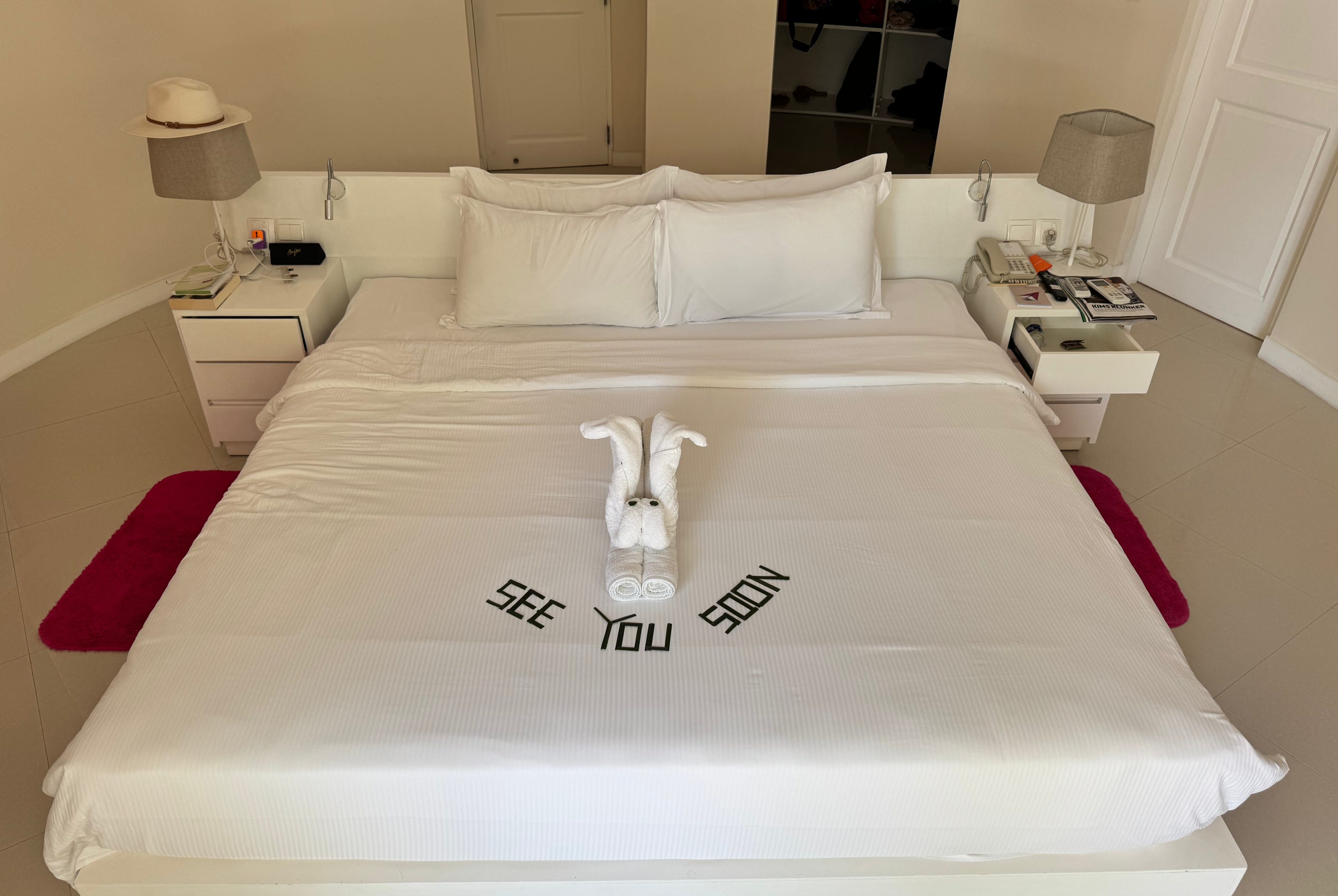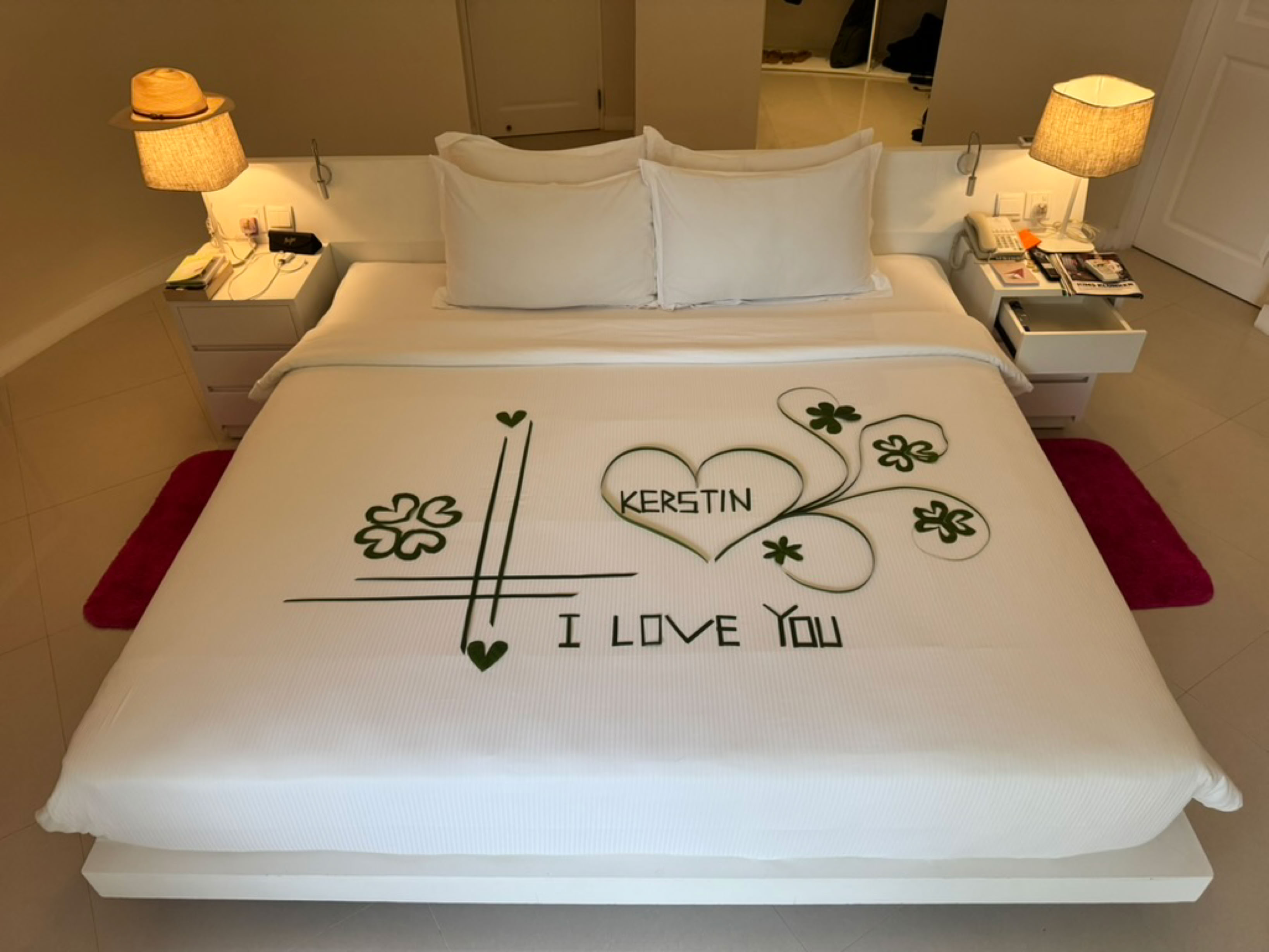 Abends wird vom Putzmann nochmal ein Abschiedsgruß auf dem Bett hinterlassen.