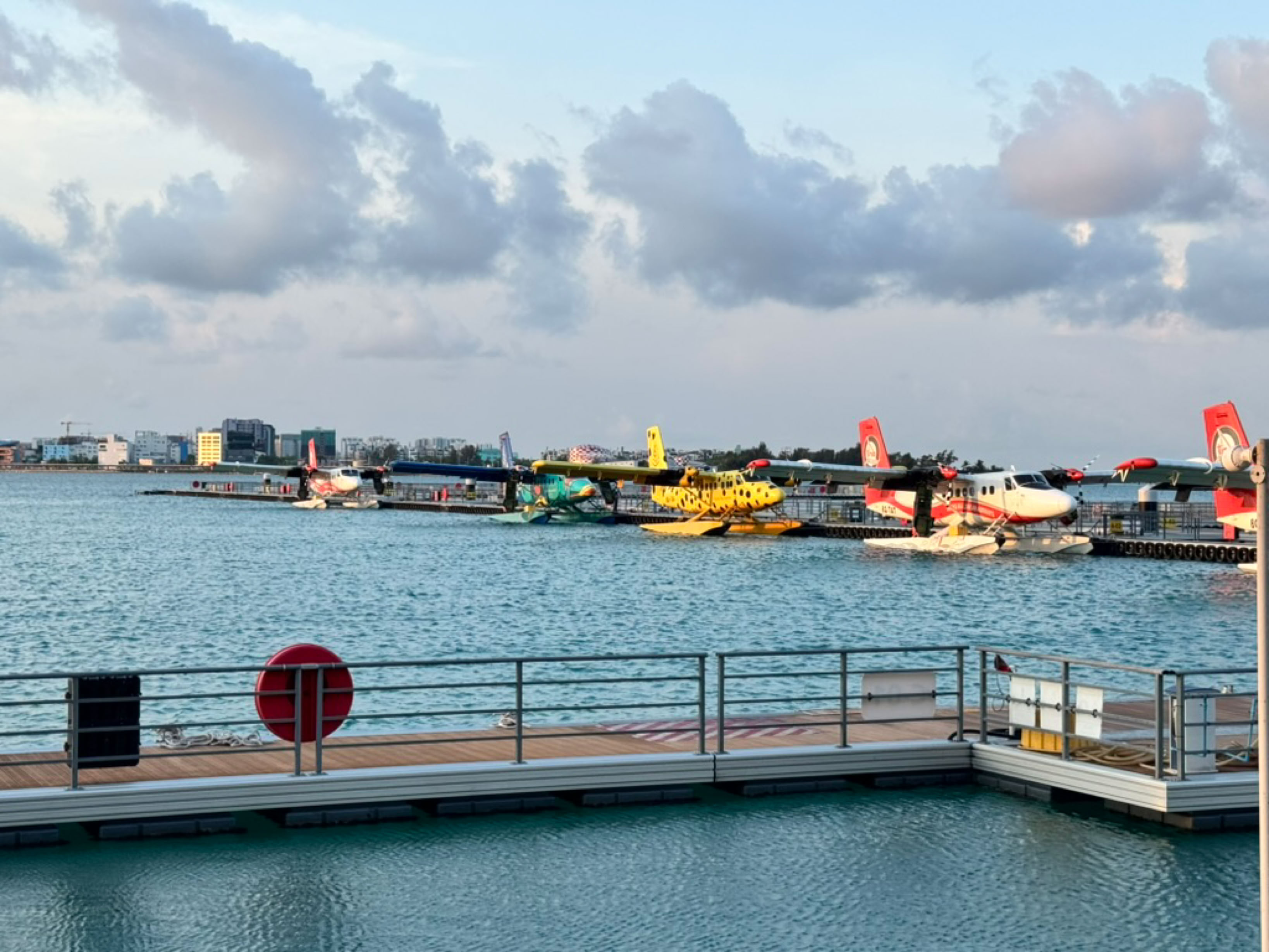 Blick von der Sun Siyam Lounge auf “Abfluggates” der Wasserflugzeuge