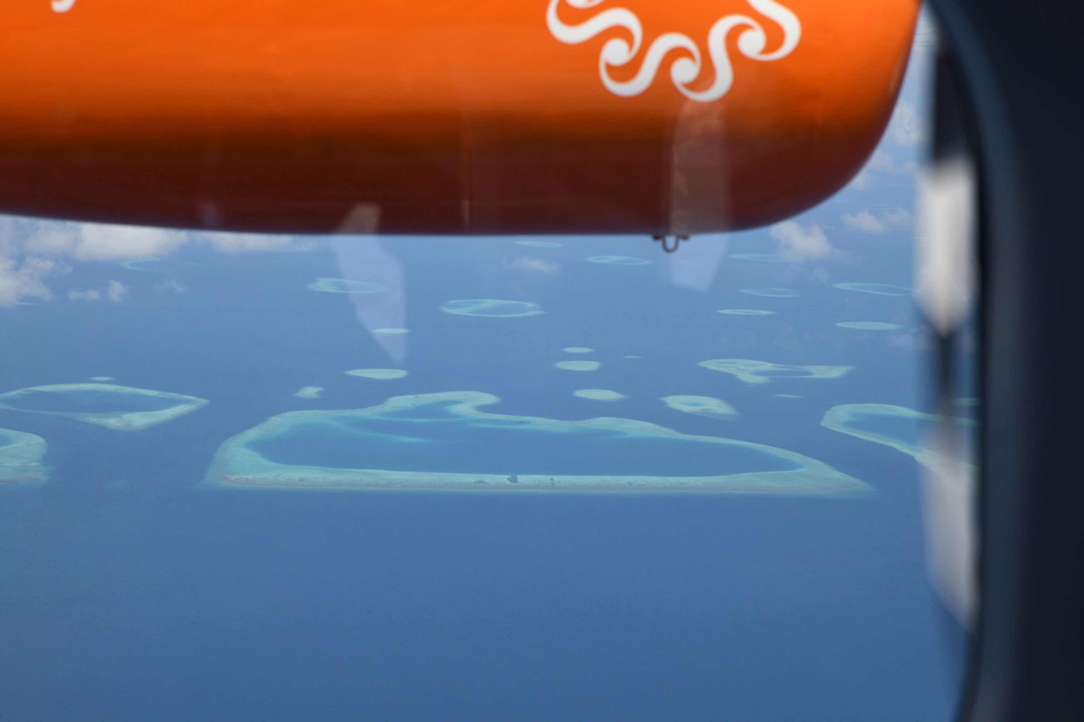 Unsere Insel liegt ca. 142 km südwestlich von Male entfernt. Zuerst landen wir bei dem Schwesterresort - Iru Veli Sun Siyman - und nach weiteren, kurzen 5 Minuten Flug sind wir auch schon am Ziel. Der Flug hat ca. 50 Minuten gedauert.