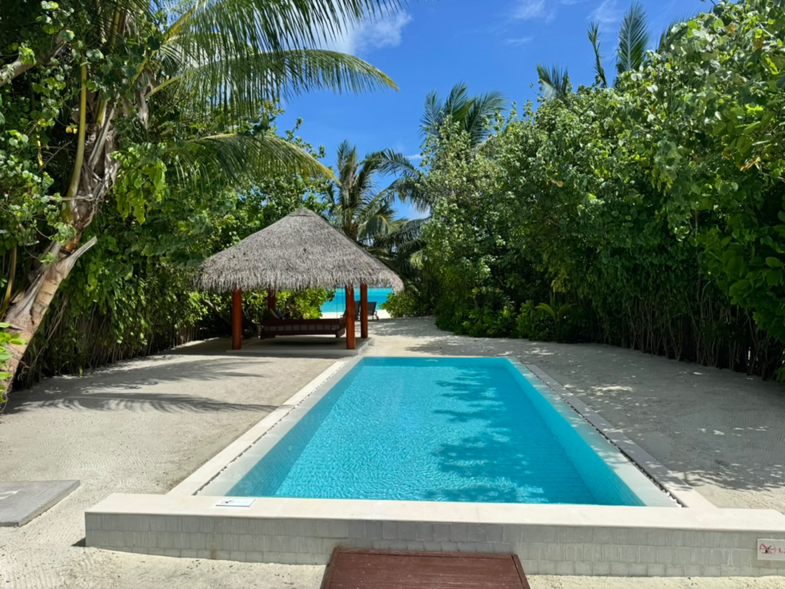 Wir beziehen unsere zwei Beach Villas (147 und 145) mit Pool. Alles sehr schön.
