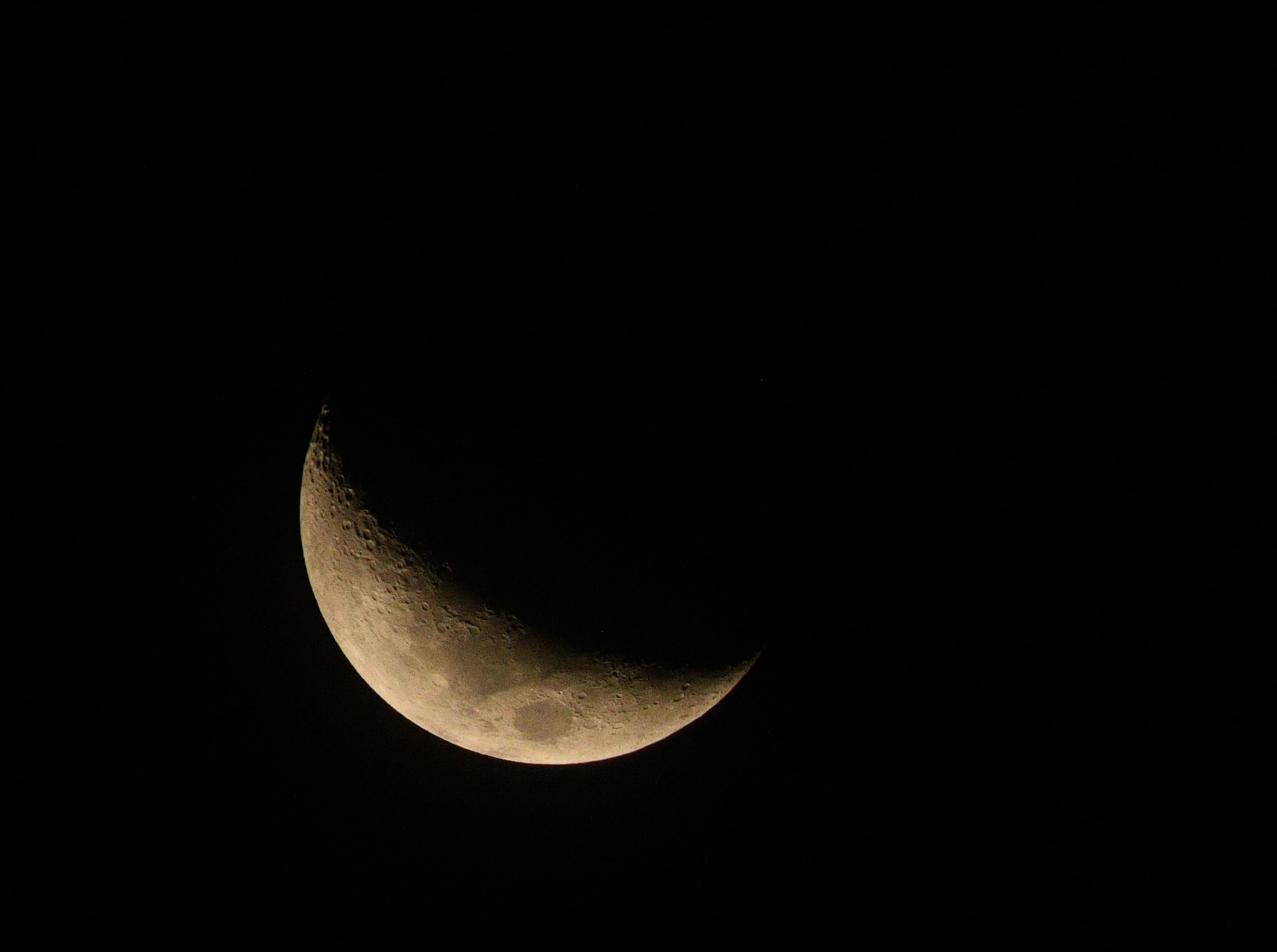 Aufgrund der Äquatornähe hat der Mond auch hier die Sichel unten anstatt seitlich. Sieht immer irgendwie interessant aus.