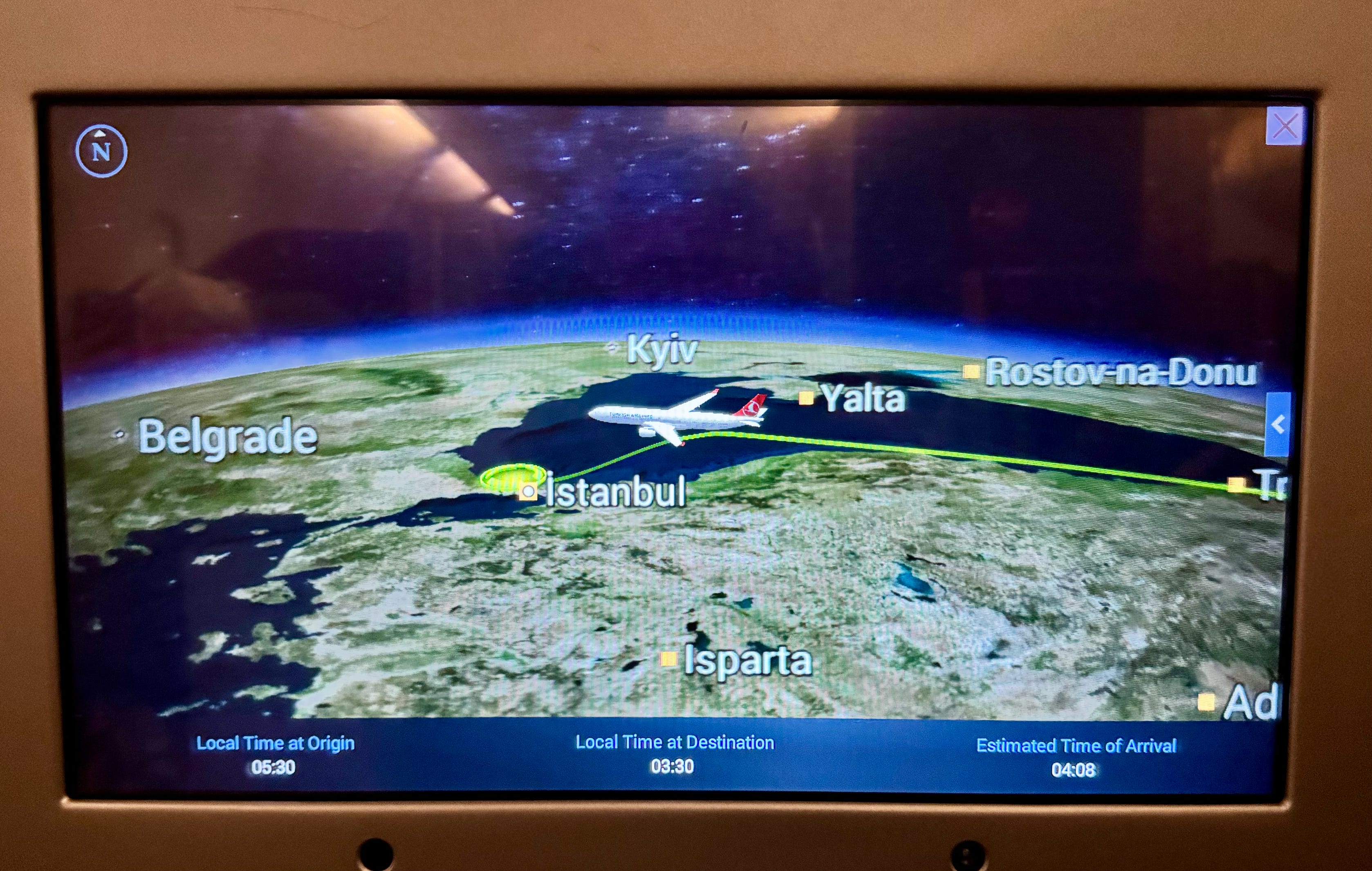 Oben: nicht mehr weit bis Male - Flugroute von Istanbul.