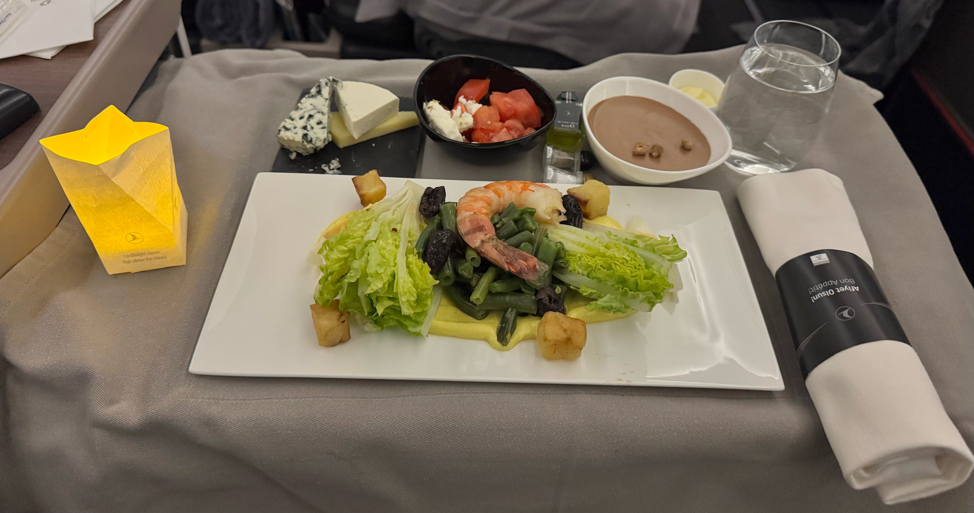 Die Maschine ist ein Airbus 330-300 mit “richtiger” Business Klasse - allerdings sozusagen auf “Sparflamme”.